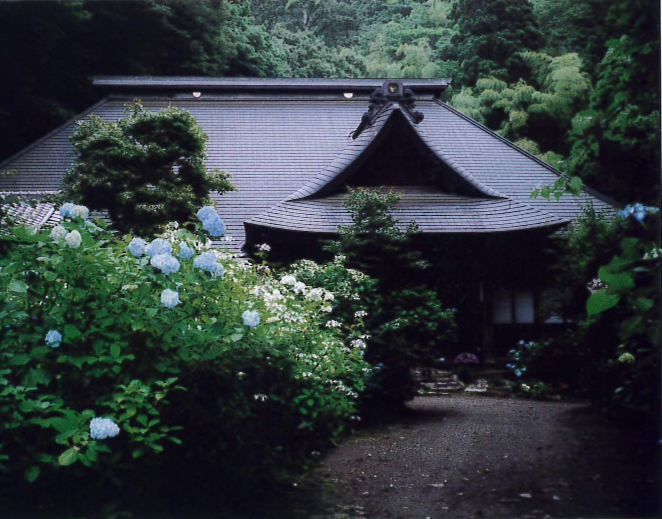 大学を卒業間近の二月二十日、塔ノ沢駅から山道を歩くこと二十分、突然目の前が開けたかのようなその山寺(阿弥陀寺)はまさに日本昔ばなしに出てくるような世界でした。境内には紅白の梅の花が咲きその匂あたり一面に漂い、茅葺屋根と裏山に青々と繁っている竹林の景色に一時呆然と眺めておりました。