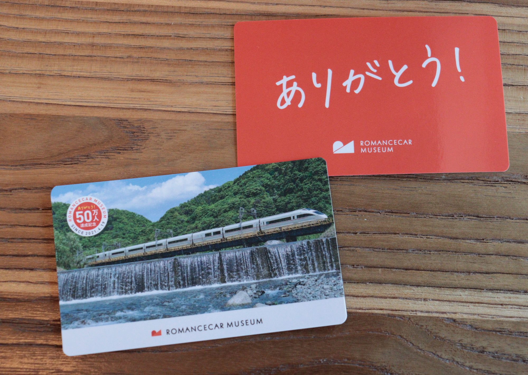 記念セレモニーは、12月20日から、先着5,000名に、オリジナルロマンスカーカード(全5種)をプレゼントする(なくなり次第、終了)。このカードは、来館者数50万人達成の記念に製作した5,000枚限定のオリジナルカードで、現役ロマンスカー4車種に加え、12月10日に完全引退したVSEをモチーフに、5デザインともに全てにキラキラ光るホログラム加工が施されている。