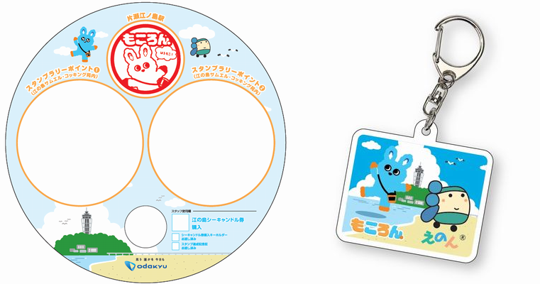 台紙は片瀬江ノ島駅で配布(左)とイベント限定のキーホルダー(右)