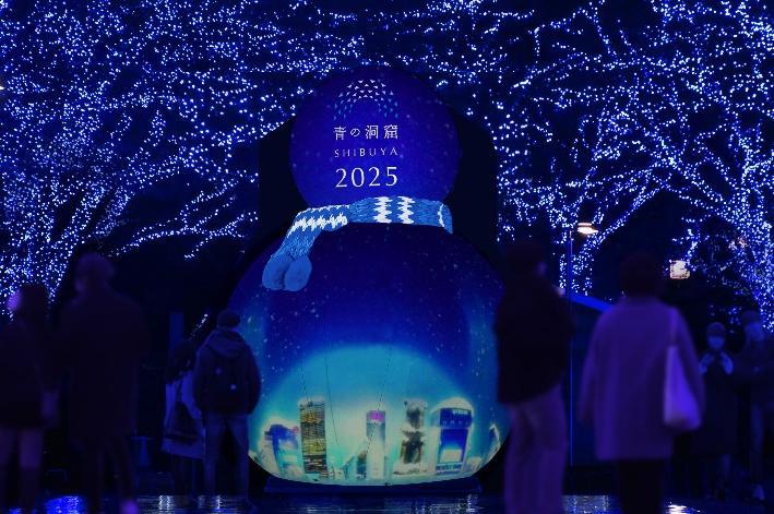 また、昨年話題を呼んだ巨大バルーン演出を、今年は雪だるまの姿へと進化させ、その名も〈青の洞窟 THE SNOWMAN〉がパワーアップして代々木公園ケヤキ並木会場に登場する。このバルーンには、クリスマスをイメージしたムービーが映し出され、青一色の光とともに、冬の渋谷が幻想的な雰囲気に一変する。雪だるまが佇む美しいイルミネーションの中で、心あたたまる冬の一夜を楽しみたい。