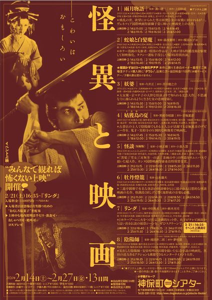 日本に古くから伝わる昔ばなしや言い伝えをもとに描かれた怪談噺や、実在する人物をモデルにした奇想天外な物語、そして天才ホラー漫画家によって生み出された奇奇怪怪なお話、等々── 怪異の世界を幻想的な映像で綴った名作、8作品が神保町シアターで上映される。