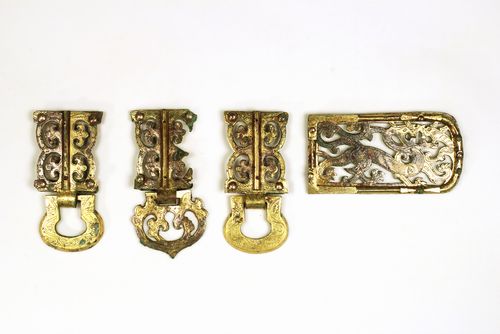 「金銅製の冠」は、やはり大加耶の有力者が身に付けた冠で、半円形の板の左右と上部に宝珠形の立飾りが取り付くもので、全体に細かい彫金が施されている。これと類似したものは、日本でも出土している。