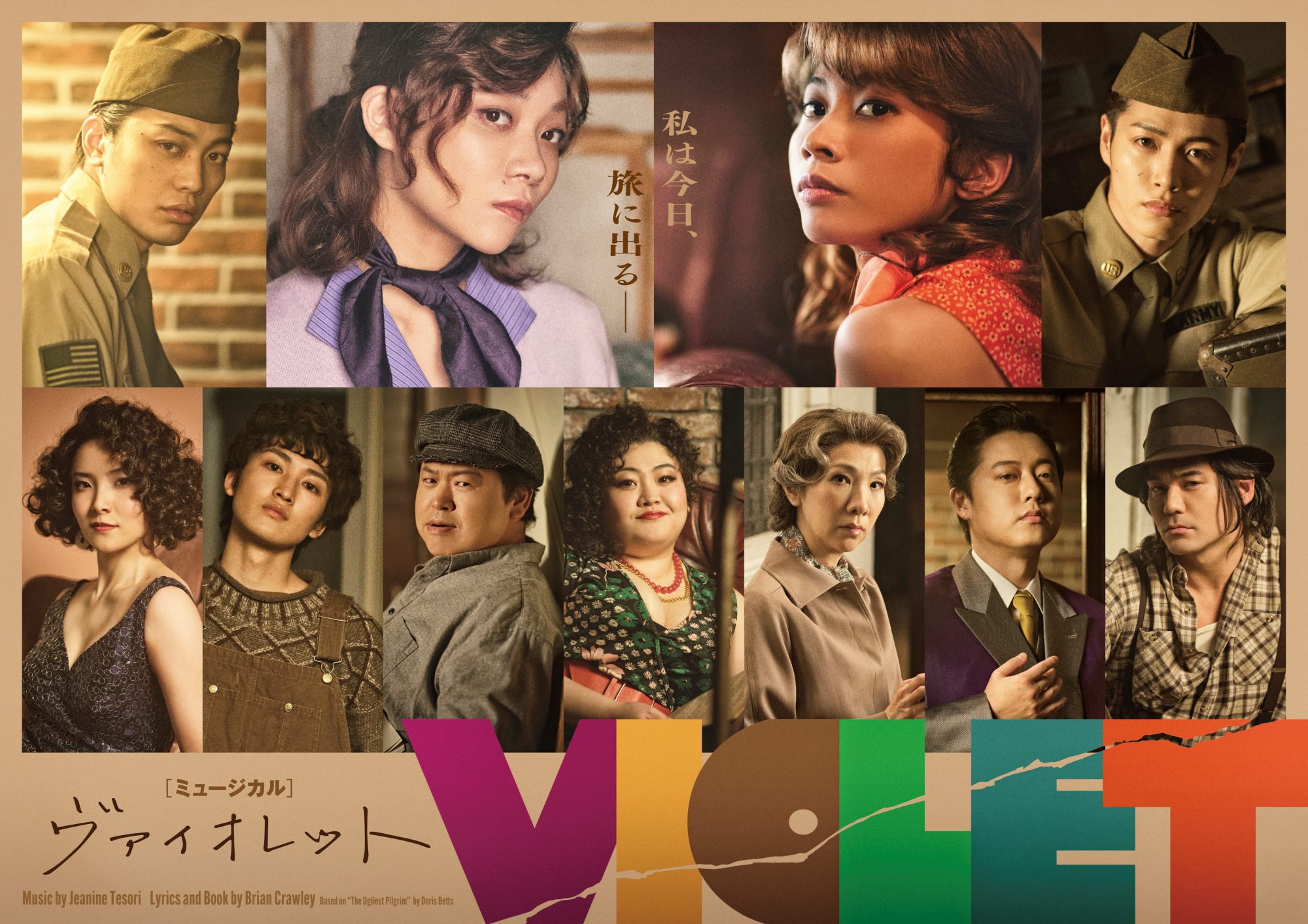 ヴァイオレット役は、映画、テレビドラマ、舞台、さらには音楽活動と多彩に活動し、唯一無二の魅力との評判を得ている三浦透子と、数々のミュージカルでの豊かな表現力と、抜きん出た歌唱力が注目されている屋比久知奈のWキャスト。ヴァイオレットと運命的な出会いを果たす、物語のカギを握る黒人兵士と白人兵士の2人の男性。黒人兵士役は『ジャージー・ボーイズ』『ラグタイム』でも藤田作品に出演しており、最近のテレビドラマ「おっさんのパンツがなんだっていいじゃないか!」でのゲイの男性役も記憶に新しい東啓介が、白人兵士役は『黒執事』『エリザベート』『太平洋序曲』をはじめミュージカルの舞台で活躍中の立石俊樹が演じる。