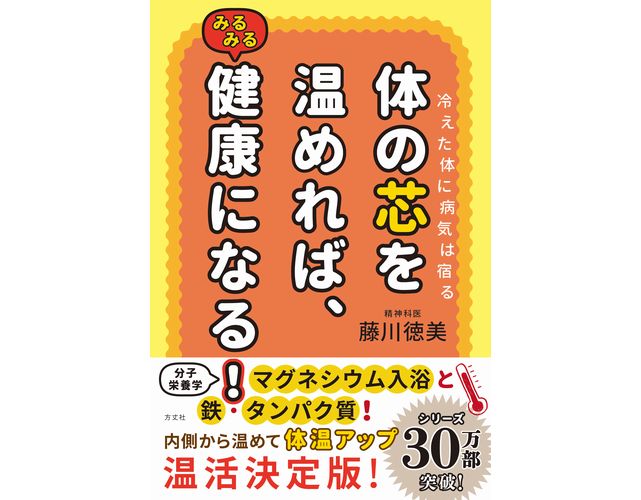 最新刊の『体の芯を温めれば、みるみる健康になる!』(方丈社刊)では、厚着をする、ショウガを食べる、運動をはじめるといった「温活」ではなく、マグネシウム入浴などの温熱療法と、鉄・タンパク質といった栄養をサプリメントやプロテインを摂取する栄養療法で、ただの冷え性対策にはとどまらない、体の芯を温め、体の芯から健康になる方法が紹介されている。