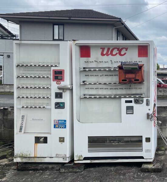 ある日突然役割を終える。中身のない姿は寂しげだ。なので、つい撮影してしまう。自販機の遺影みたいだ。