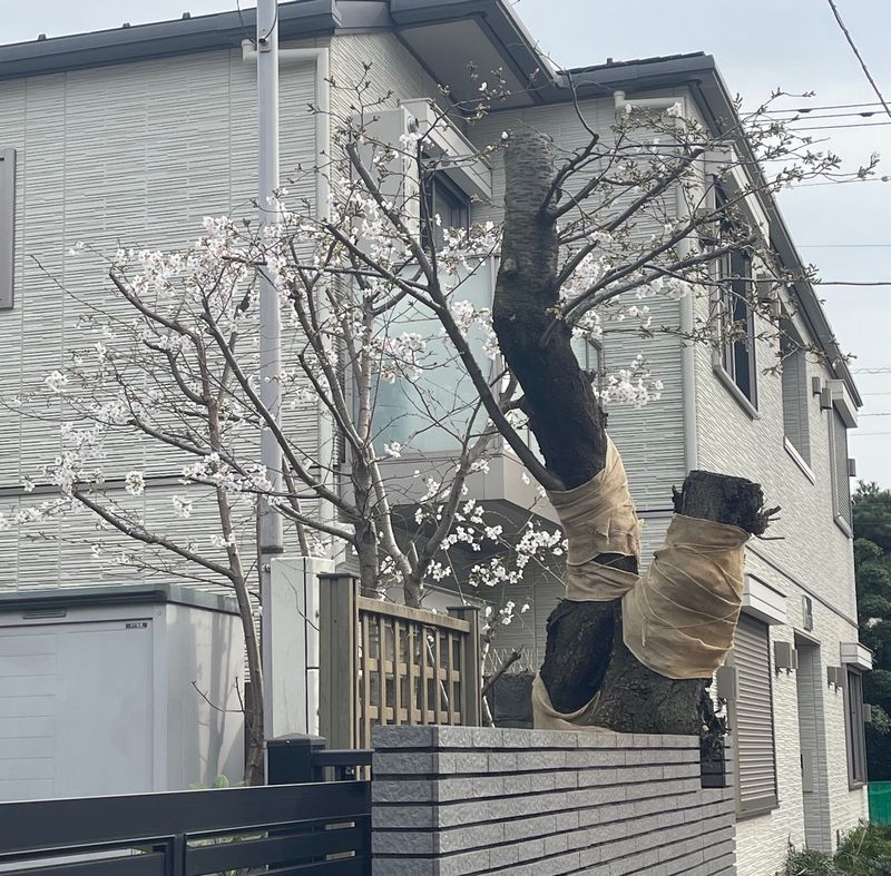 散歩の途中で、咲き始めの桜の樹を見かけた。老木と若木が並んでいる。多分、もうすぐ朽ちてしまいそうなので、隣りに新しい樹を植えたのだろう。