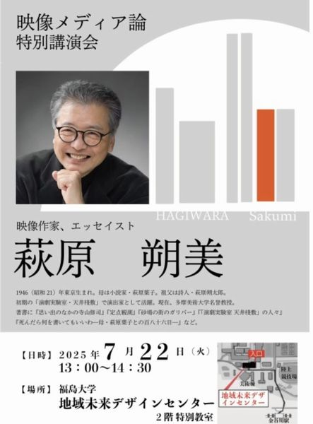 エッセイスト、映像作家、演出家、多摩美術大学名誉教授。1946年東京生まれ。祖父は詩人・萩原朔太郎、母は作家・萩原葉子。67年から70年まで、寺山修司主宰の演劇実験室・天井桟敷に在籍。76年「月刊ビックリハウス」創刊、編集長になる。主な著書に『思い出のなかの寺山修司』、『死んだら何を書いてもいいわ 母・萩原葉子との百八十六日』など多数。現在、萩原朔太郎記念・水と緑と詩のまち 前橋文学館の館長特別館長、金沢美術工芸大学客員名誉教授、前橋市文化活動戦略顧問を務める。 2022年に、版画、写真、アーティストブックなどほぼ全ての作品が世田谷美術館に収蔵された。