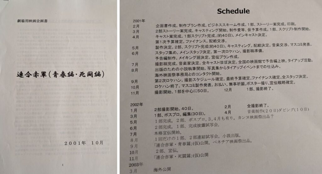 『連合赤軍』だけでも何十冊の脚本がある。ただ、どうしても6時間以内の尺(長さ)にならなかった。赤軍派らの行動を、彼らの幼少期から描く。実話ベースとは言え、フィクションで、ある意味で「青春映画」だ。監督自体は左翼でもなく、どちらかと言えばノンポリに近い。普通に生まれた子どもが、どこかで左翼になり、あさま山荘事件のリンチにまで至ってしまう。行動よりも内面にせまった素晴らしいストーリーではあった。しかし、ノンポリに、実際の彼らの気持ちに迫るのは難しいことでもある。何度直しても決定稿に届かない。