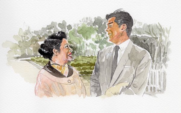 磯野サザエは、『初恋チャッチャ娘』や『チエミの婦人靴(ハイヒール)』などで、コメディエンヌとしての立ち位置を確立していた江利が満を持して取り組んだ役柄であり、お人好しであわてん坊、そして底抜けに明るいというキャラは江利にピッタリ。今も人気アニメとして綿々と続くサザエさんを実写・舞台で演じた女優は数多いが(※2)、最も漫画のイメージに近かったのがチエミで、実際そのキャリアを通じてのはまり役となる。