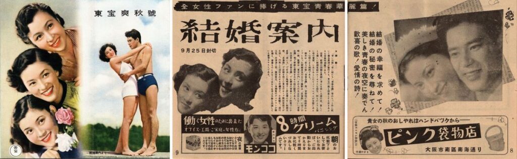 マスオさんを同じく十作続けて演じた小泉博は、慶應義塾大学卒で元NHKのアナウンサーというエリート育ち(※7)。藤本真澄の推しで第三期東宝ニューフェイスに合格、のっけから石坂洋次郎ものの『青春会議』(52)で青春スターとして売り出された有望株だった。