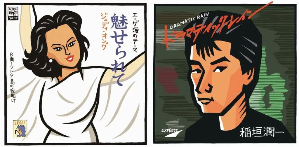 ▲(左)1979年2月25日リリースのジュディ・オング「魅せられて」(作詞:阿木燿子)。オリコンシングルチャート1位の売れ行きで、筒美作曲のシングル売上でも1位を誇る大ヒット曲。79年の日本レコード大賞・大賞に輝き、筒美は2度目の大賞を受賞した。また、2年連続5度目となる作曲賞も受賞している。筒美は自身の曲の編曲もほとんどと言っていいほど手がけており、この曲もまた、編曲家としての筒美の才能が際立つ曲としても語られる。そしてレコード大賞を競った西城秀樹の「勇気があれば」も筒美の作曲だった。(右)1982年10月21日リリースの稲垣潤一「ドラマティック・レイン」(作詞:秋元康、編曲:船山基紀)は、オリコンシングルチャート8位のヒットだった。その後も稲垣潤一には「エスケイプ」「夏のクラクション」などの楽曲を提供している。80年代の筒美は81年、82年、83年、85年、87年に作曲家年間売上トップ1に輝いている。