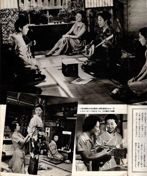 56年の成瀬作品『流れる』では、父と共演経験のある栗島すみ子、田中絹代、高峰秀子や、山田五十鈴、杉村春子と演技を競い合う貴重な体験をしたものの、今度も芸者役だったことにウンザリした岡田は、いよいよその年11月の再契約を保留、57年3月に正式にフリーの立場を選ぶ。よって成瀬とのコンビも、この映画が最後となった。
