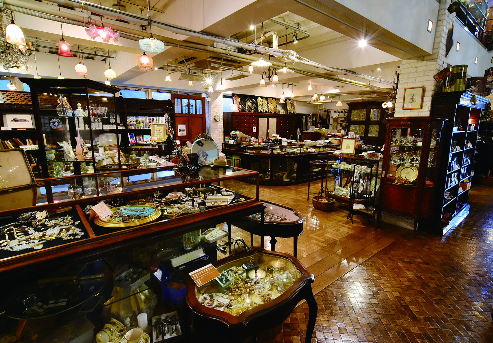 インテリアショップが並ぶ目黒通りに面し、吹き抜けの広々とした店内は、イギリスのアンティーク家具を中心に、陶磁器、照明、アクセサリー、小物類など品ぞろえが豊富である。地下1階と3階は主に家具で、3階はエレガントなマホガニーとウォールナット材を用いた家具がメイン。アンティーク家具の中にいると、夢が広がっ てくるようだ。海外から買い付けられた家具は、長く大切に使うために、英国式修復の技術を持った専任のスタッフによって丁寧に修復されている。