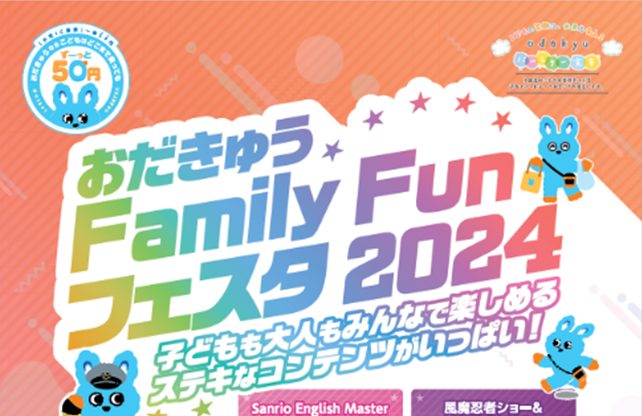子どもの成長に寄り添い、子育て世代の家族がやさしい笑顔になってもらいたいと、小田急電鉄グループでは、2021年11月に「子育て応援ポリシー」を掲げた。たとえば小児IC運賃の全区間一律50円化(低廉化)など、鉄道会社ならではの取り組みを推進。その一環として子育て応援ポリシーに賛同する自治体や企業のパートナーとともに沿線のお出掛け情報を集積してファミリーで出掛ける機会を提案していこうと企画された、親子で楽しめるイベント、第3回「おだきゅう Family Fun フェスタ 2024」、12月8日(土)~9日(日)が海老名駅近くの海老名中央公園で開催される。