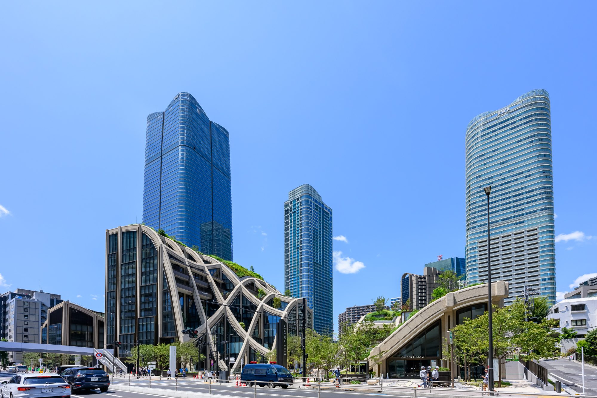 低層部は、今世界が最も注目するヘザウィック・スタジオによるデザインで、曲線美を誇るダイナミックな建築物は、緑と調和して、「麻布台ヒルズ」のを景観を象徴している。敷地内には約320種の多様な植物が生育し、建物の屋上にはブルーベリー、レモン、モモなどの果樹園も誕生するという。さらに街の中央には交流や憩いの場となる緑の広場「中央広場」が設けられ、隣接する芝生エリアにはアートが点在し、アートを身近に楽しむことができる。