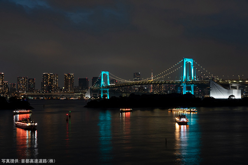 開通した30年前といえば、バブル経済が崩壊し、施設をライトアップすることに様々な意見もあったが、レインボーブリッジの照明が点灯する瞬間と海に浮いているように見える夜景は、多くの人々の心を和ませることになった。30周年にあたって、期間限定の記念スペシャルカラーによるメッセージが込められた光でライトアップされるという。
