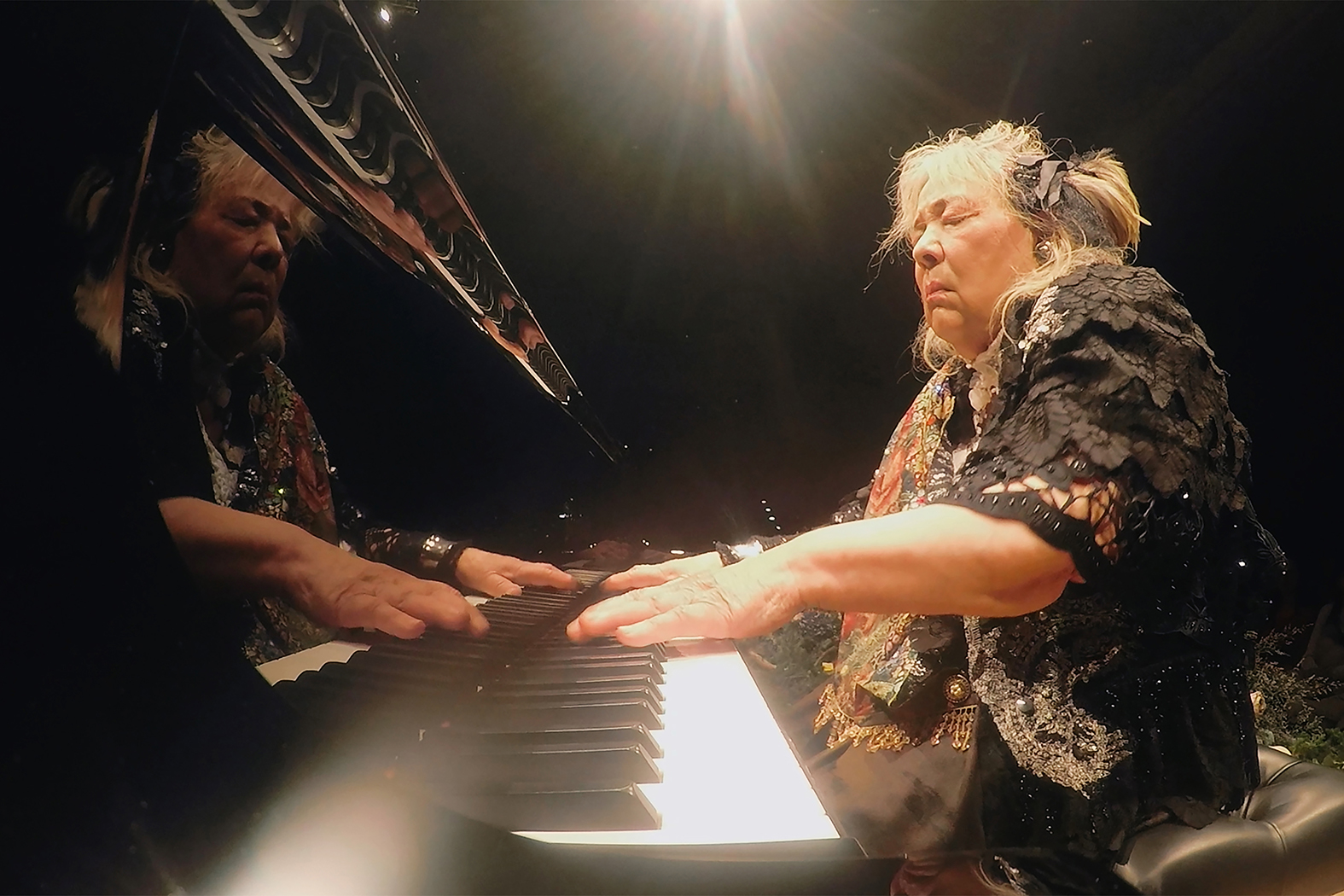 本作では、圧巻の“ラ・カンパネラ”、名曲クラシックの数々、現代作曲家のオリジナル曲など初公開を含むフジコの演奏が映画館のスクリーンで映し出される。