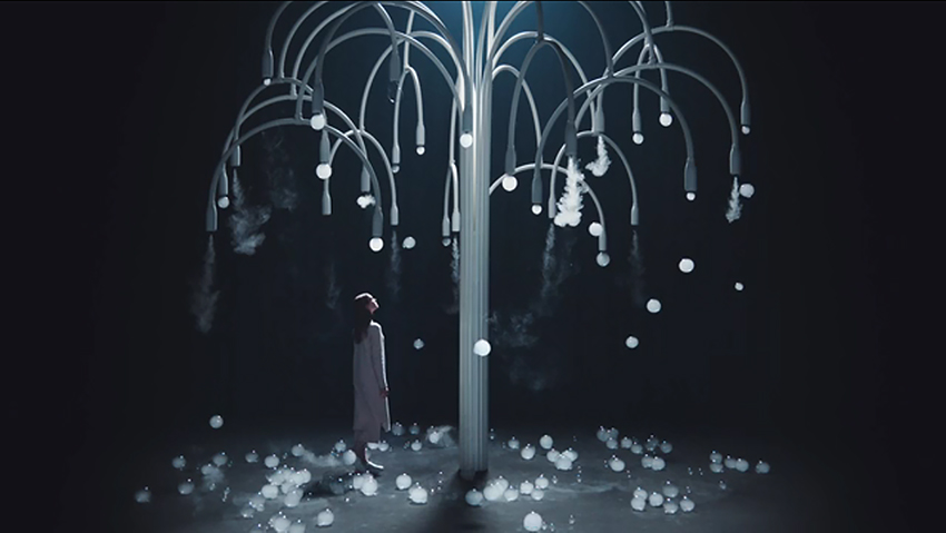 たとえば、A.A.Murakamiの没入型インスタレーションは、暗室の中につくられた装置からシャボン玉が湧いてくるのだが、弾むシャボン玉を追っていると時間の経過をつい忘れて見入ってしまう。 A.A.Murakamiは、ロイヤル・カレッジ・オブ・アートで建築を学んだ村上あずさと、アートを専攻していたアレクサンダー・グローブスのアーティストデュオで、ロンドンと東京を拠点にしている。