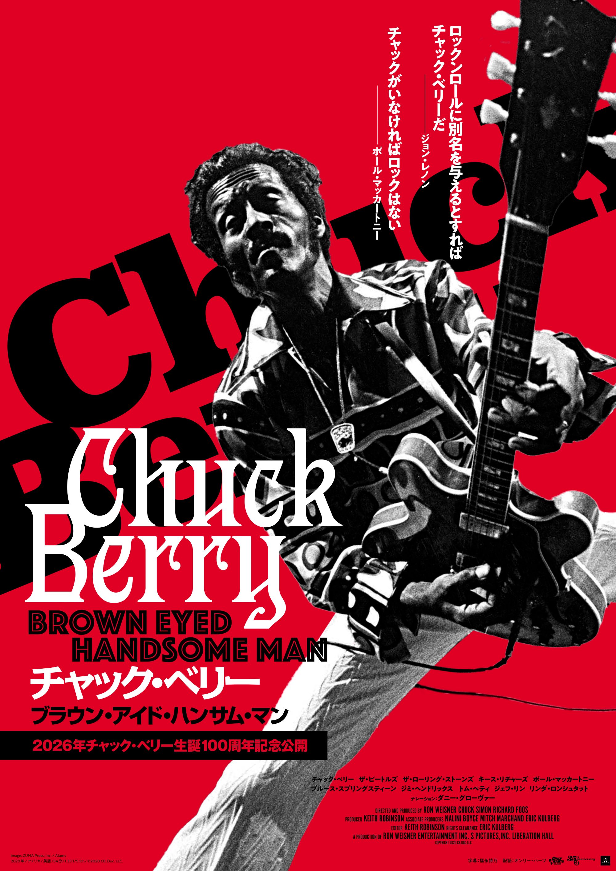 チャック・ベリー(1926~2017)は、人種や世代の壁を越え、後続のアーティストや文化・社会に圧倒的な影響を及ぼしたロックンロールの創始者である。生誕100年にあたる2026年、記念映画『チャック・ベリー ブラウン・アイド・ハンサム・マン』が、2026年1月16日(金)より角川シネマ有楽町、UP LINK 吉祥寺、新宿K’s cinema(1/17より) 他で公開される。