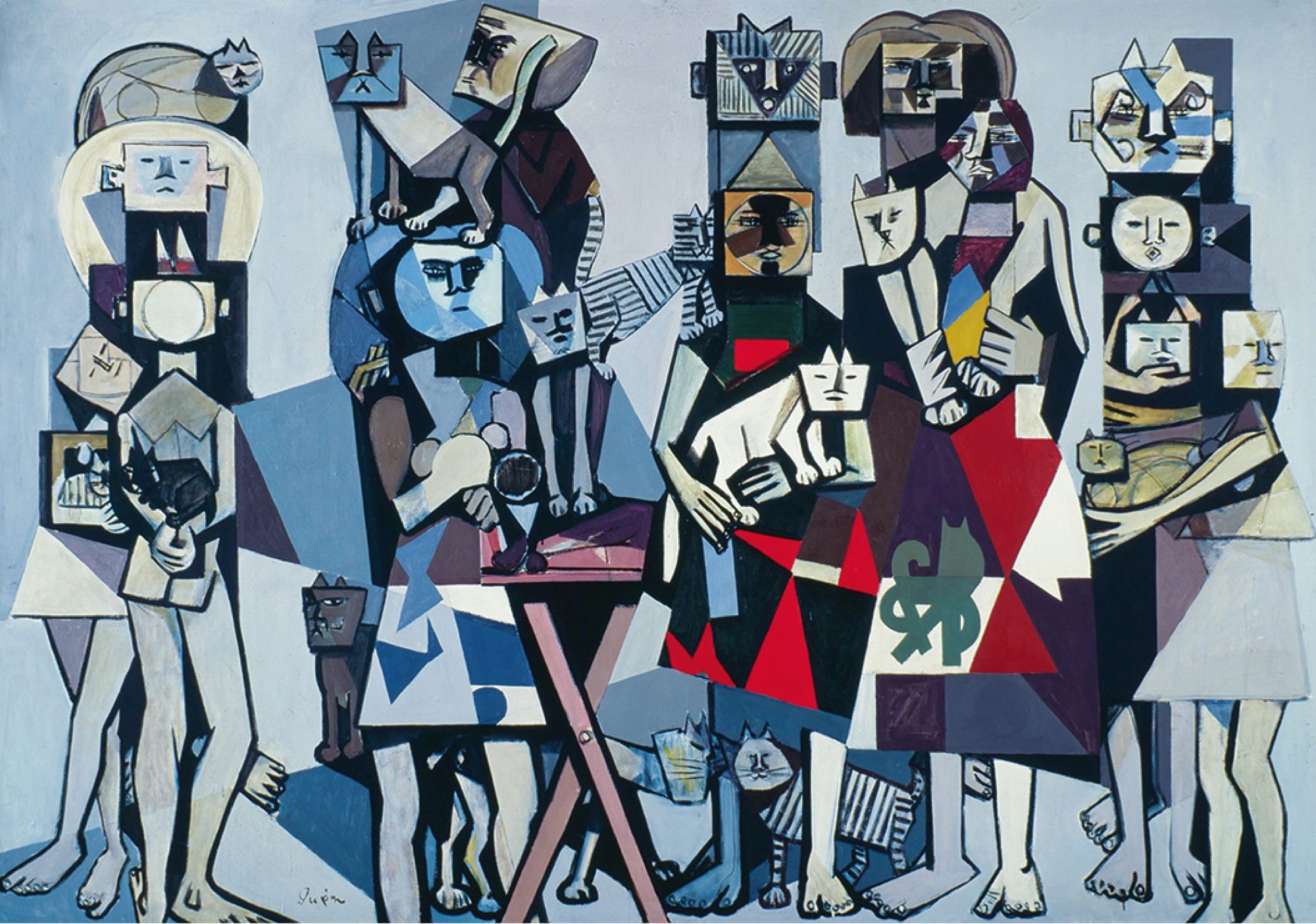 猪熊弦一郎は香川県に生まれ、東京美術学校(現・東京藝術大学)の藤島武二教室で油彩画を学び、1936年に小磯良平らと新制作派協会(現・新制作協会)を結成しました。東京、パリ、ニューヨーク、ハワイと拠点を移しながら、マティス、ピカソ、藤田嗣治、イサム・ノグチら様々な芸術家と交友し、彼らに刺激を受けつつ独自の画風を追究しました。またその制作活動は幅広く『小説新潮』の表紙絵を40年間描いたほか、三越の包装紙「華ひらく」のデザインや、JR上野駅中央改札の壁画《自由》の制作を担ったことでも知られています。