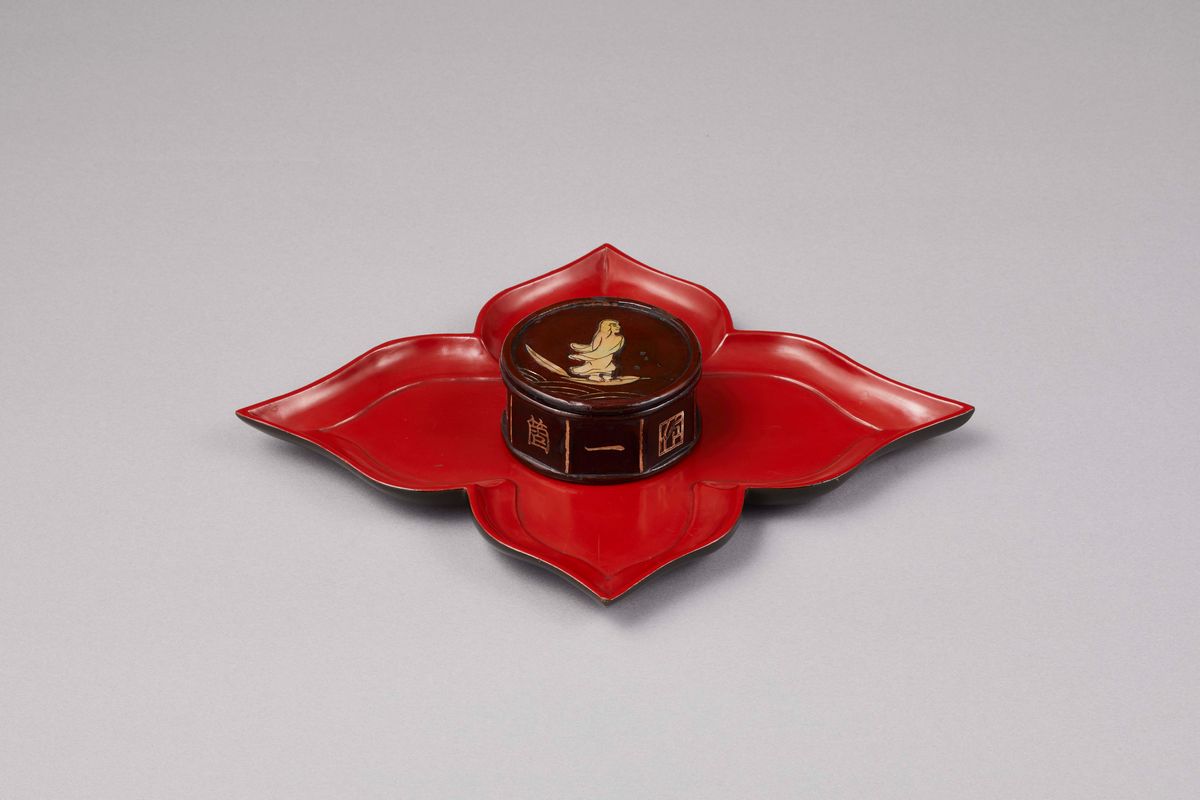 《青貝芦葉達磨香合》《朱塗菱形十字花弁盆》ともに中国・明時代16世紀 泉屋博古館東京