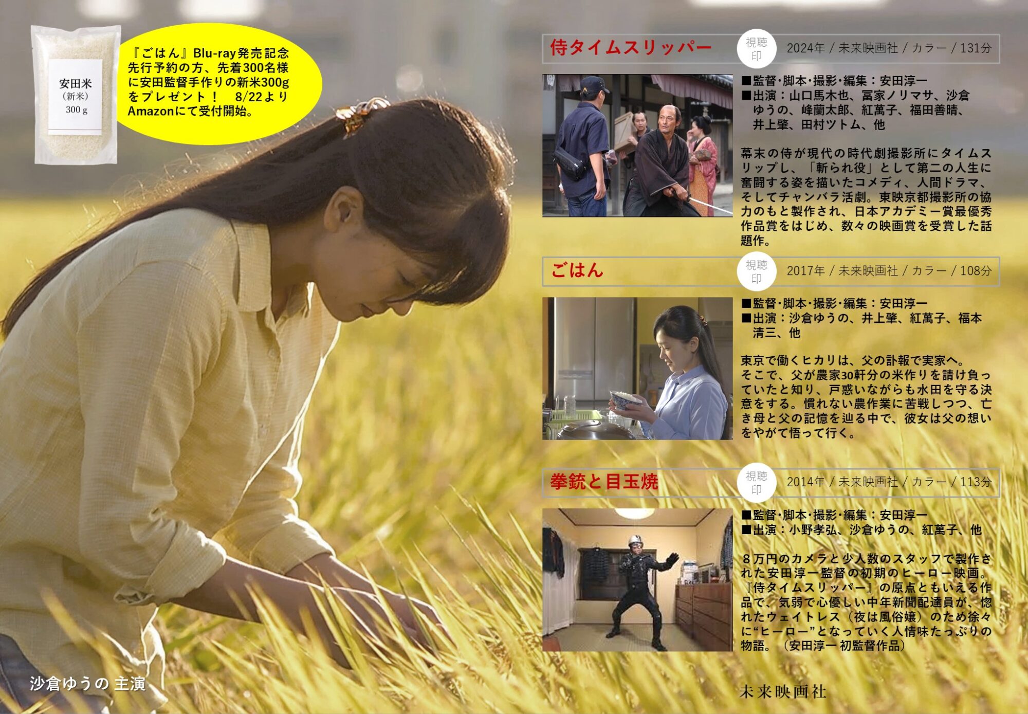 また、『ごはん』Blu-ray発売記念として、先行予約300名に安田監督手作りの新米300gのプレゼントがある。(8/22よりAmazonにて受付)