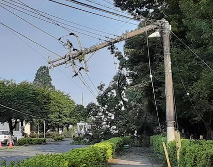 また、⾵で⾶ばされてきた物で電線が切れて停電になったり、最⼤⾵速が40m/sを超えると電柱が倒れたりすることさえあります。