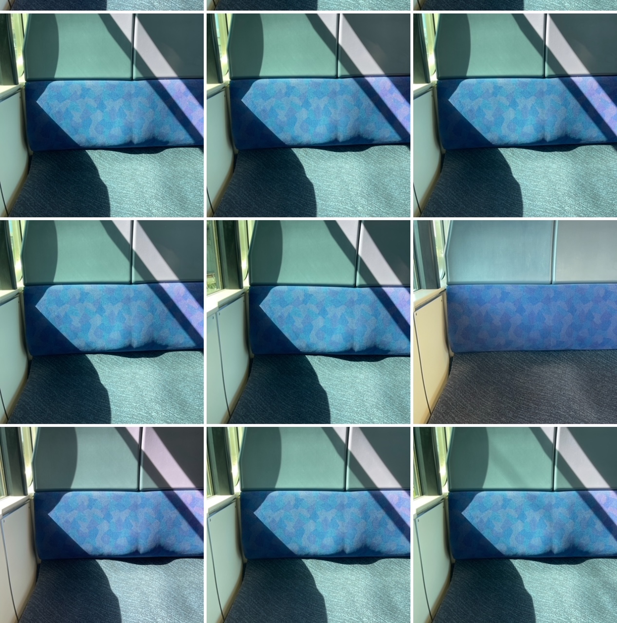 ▲車中の向かいの席を撮影し続けたら、アートみたいになった