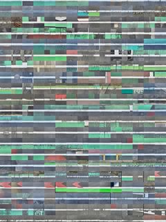 道路に引かれた白線を撮影して、携帯画面に並べたら、抽象絵画のような画像になった。一枚一枚は、何の変哲もない路面。それを集合させると、何故か表現に見える。意図しない画面の組み合わせが、意図された画面に変容するから面白い。