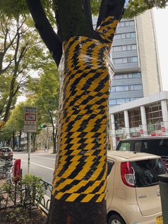 黄色と黒のテープを見かけると、あのぐるぐる回る虎に見えてしまう。樹に巻き付いている虎テープ。路面にとぐろを巻いている虎テープ。どれもこれも、みんなバターになりたがっているように思えてならないのだ。(笑)