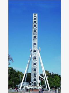 そこで私は、観覧車を真横から撮影して一本の縦線にしてみたのだ。なんとも愛想のない棒。発射台のロケットのような、梯子のような、どう見ても観覧車に見えない。そこが気に入って、以来縦線の観覧車を撮り続けている。