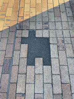 気になってしまう。きれいに並んだ路面のタイルが、1枚だけ剥がれている状態だ。目が、欠けたワンピースから離れなくなり、(笑)結局撮影してしまう。