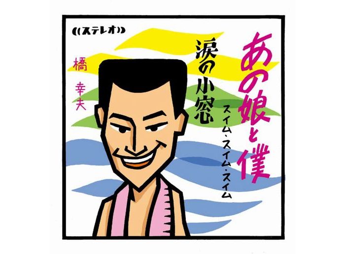季節外れながら、燦燦と太陽の輝く真夏のビーチを恋しく思いながら、1965年にビクターからリリースされた橋幸夫の「あの娘と僕(あのことぼく) スイム・スイム・スイム」をご紹介したい。65年のNHK紅白歌合戦で、白組のトリを務めた橋が歌ったのが「あの娘と僕~」である。橋のバックでは、坂本九やこの年ジャズのスタンダード・ナンバー「マック・ザ・ナイフ」を歌って初出場を果たしたジャニーズをはじめとする白組メンバーや、応援で駆けつけたNHKの人気番組「ジェスチャー」の白組キャプテン柳家金語楼、やはりNHKで放送中だった大人のバラエティ番組「夢であいましょう」や、人気コメディドラマ「若い季節」に出演していた、まだ『男はつらいよ』が始まる前の渥美清らが、スイムのリズムでステップを踏んでいた。