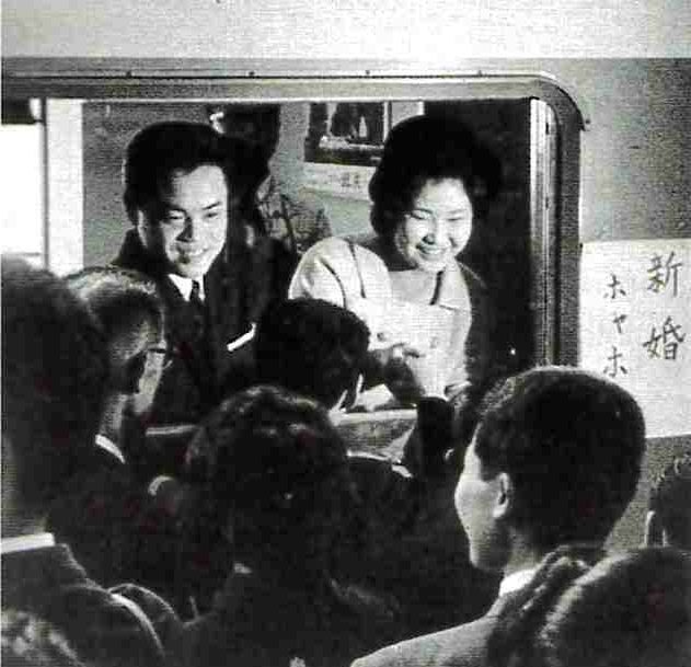 高度経済には成長期には、新婚旅行に出かけるカップルの見送りの人で駅のホームは大変な混雑ぶりであった。