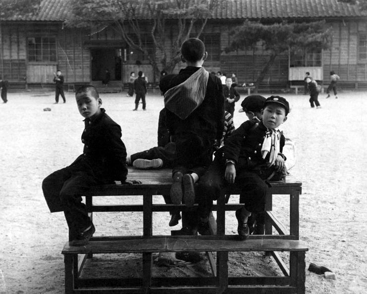 まだランドセルが普及する前のこと。教科書や筆記用具、そして弁当を風呂敷に包んでいる。この時代、子供たちは着物だから風呂敷がよく似合っている。